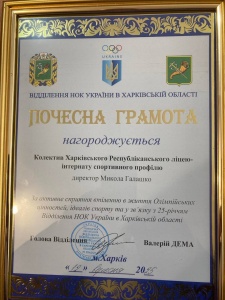 Відзнака ХРЛІСП від відділення НОК України в Харківській області.