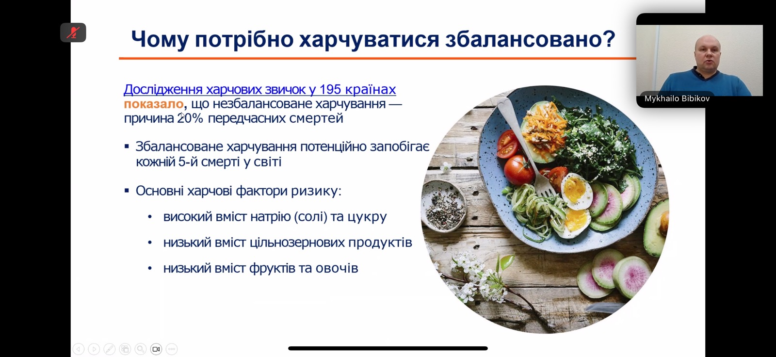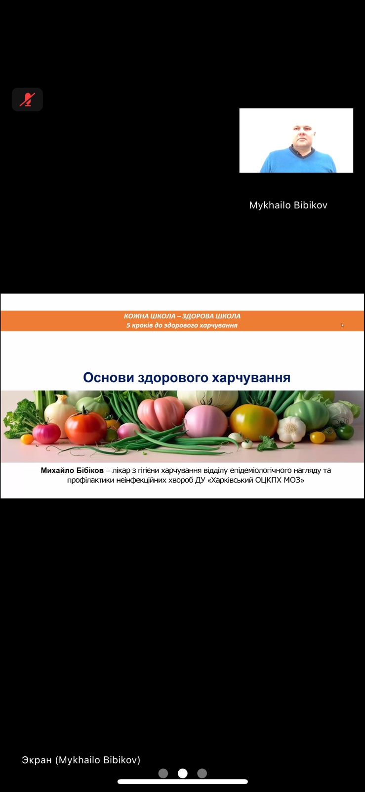 17.10 до Всесвітнього дня здорового харчування проведен вебінар з лікарем з гігієни харчування Харківського обласного центру контролю та профілактики хвороб МОЗ України Михайлом Бібіковим.